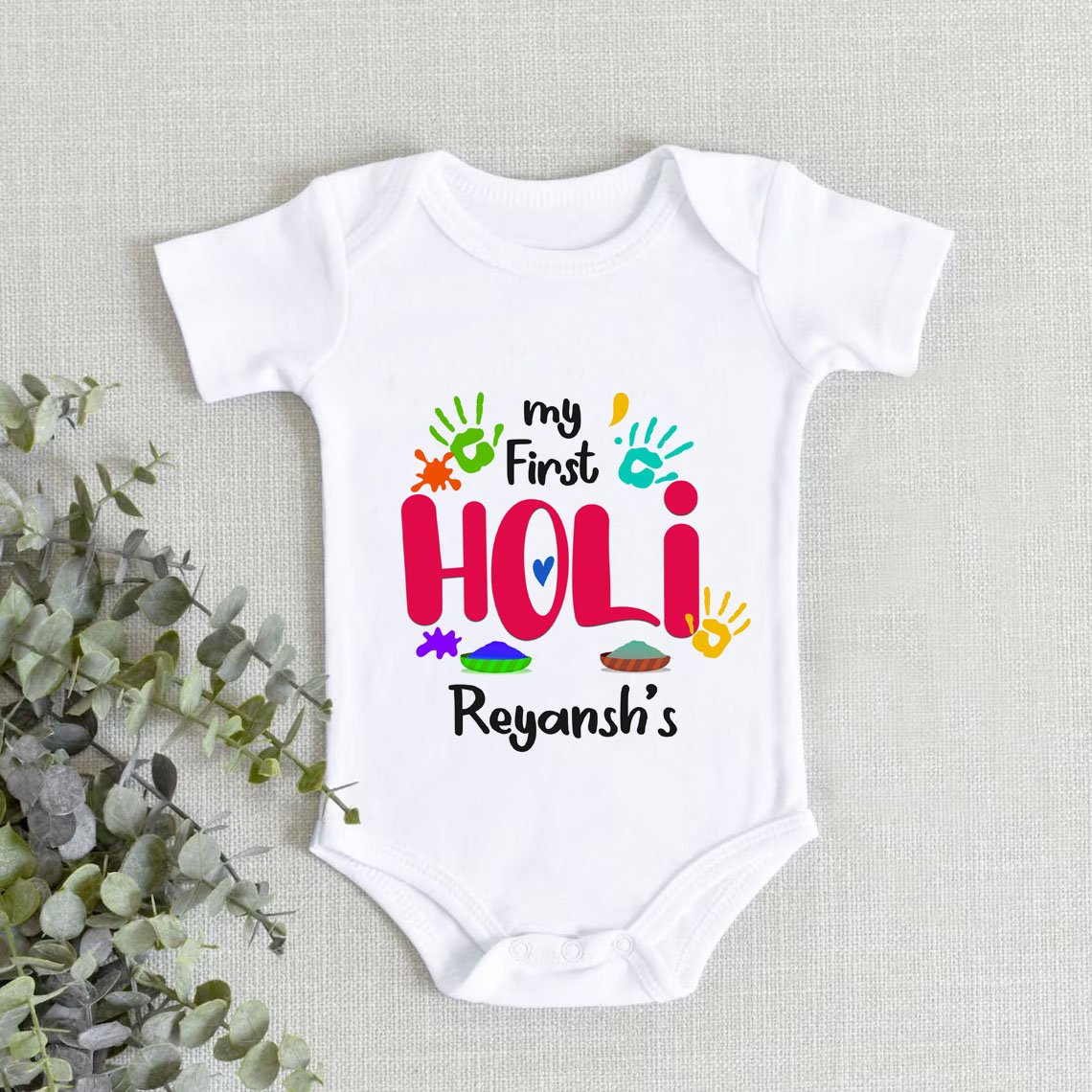 Buy My First Holi Onesie | 1st Holi Baby Romper/ Bodysuit