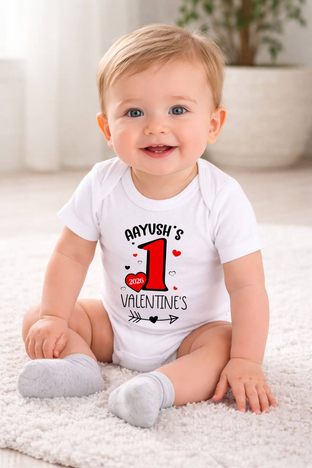 Customized Baby Girl Boy 1st Valentine’s Day Printed Romper