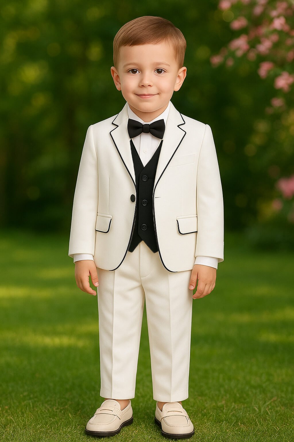 Boys 4-Piece White Tuxedo Suit – Wedding, Birthday Party