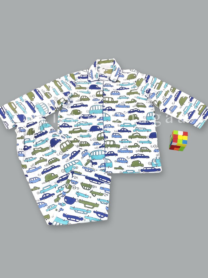 Car Print Full Sleeve Cotton Night Suit Set for Boys