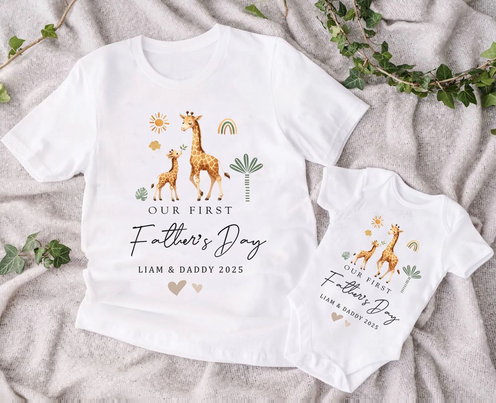Matching Father’s Day Shirt and Baby Onesie | Giraffe Theme