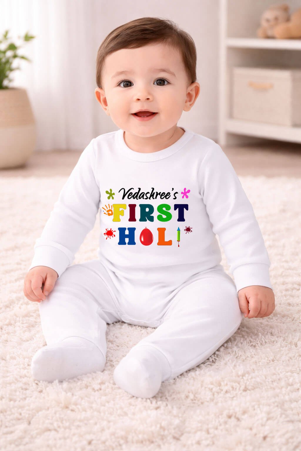 My First Holi White Baby Jumpsuit / Tshirt / Onesie