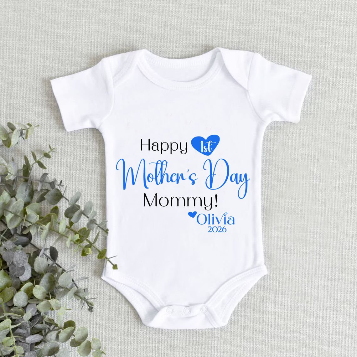 Celebrate a precious milestone with our custom made First Mother’s Day onesie, personalised with your child’s name and year. Thoughtfully designed to create lasting memories, this adorable First Mother’s Day outfit is made from soft, breathable cotton that keeps your baby comfortable all day. Perfect for photoshoots, family moments, or gifting, it adds a heartfelt touch to the celebration. This beautiful Mother’s Day gift for new mums is both stylish and meaningful, making it a keepsake to cherish forever while celebrating the special bond between a mother and her little one.