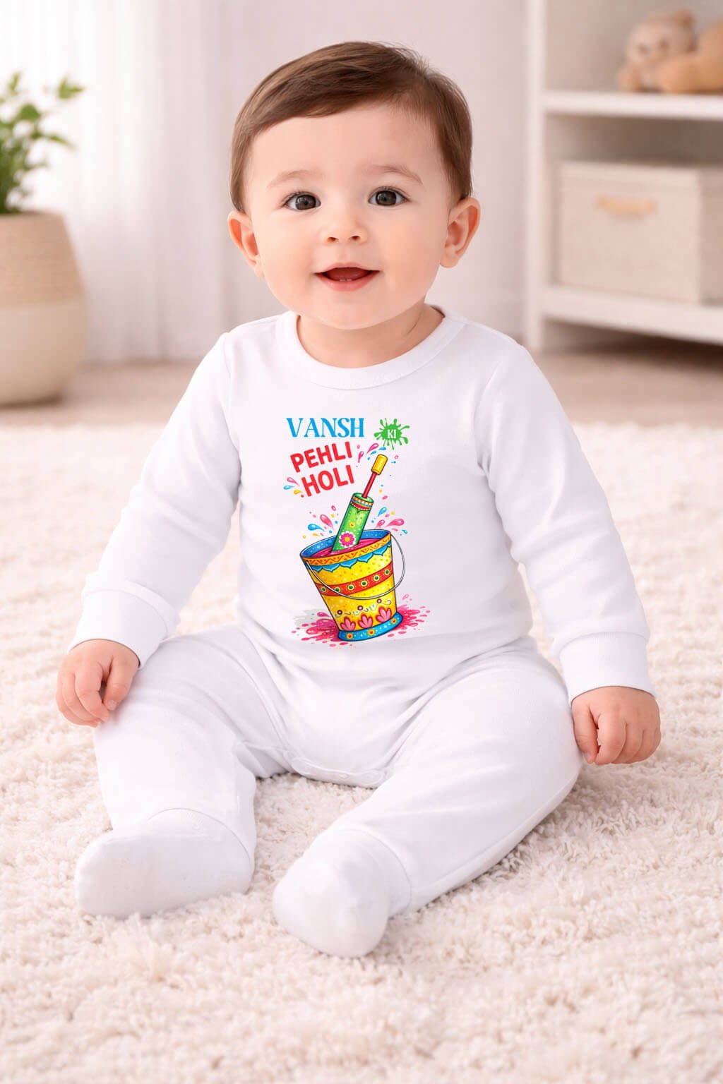 Personalized Pehli Holi Printed Baby Jumpsuit/ Bodysuit